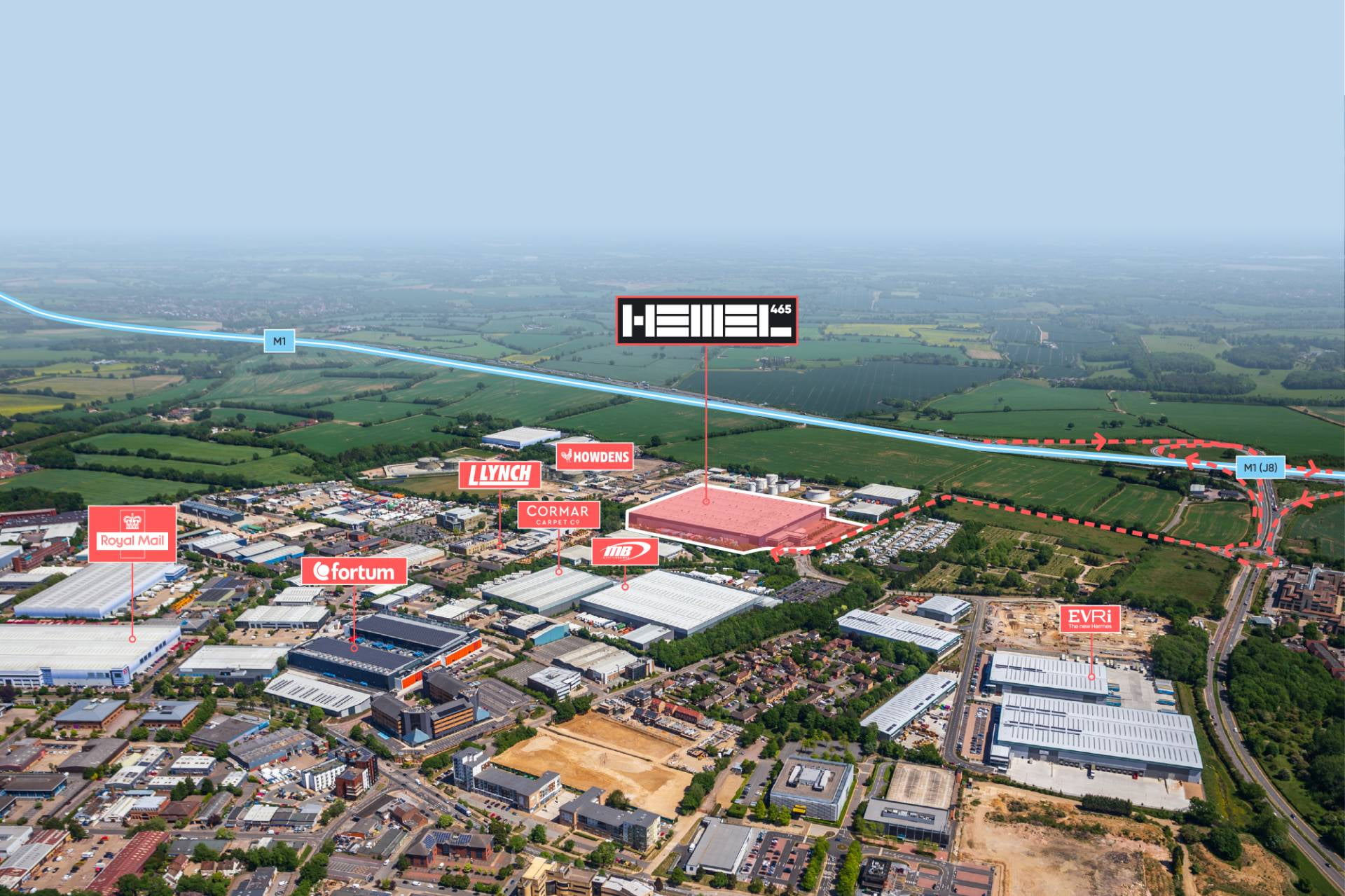 Hemel 465 is an established logistics location providing excellent motorway access to London, the wider South East and national motorway network. Home to a number of major distributors including Royal Mail, Hodwens, Evri, ASOS, Wickes, Amazon, and Next.